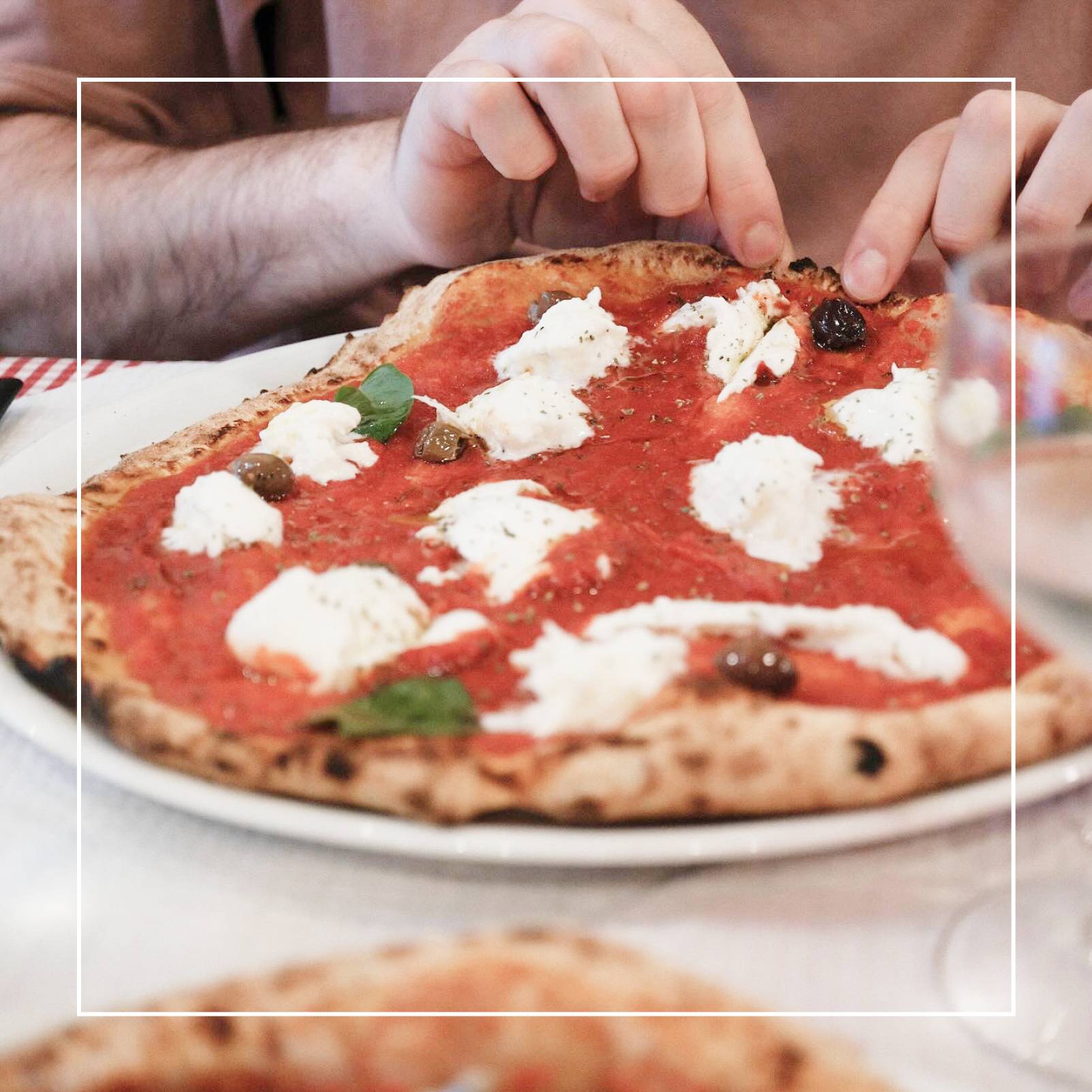 Notre pâte repose au minimum 36 heures, levée au levain naturel, pour une texture légère et digeste. Chaque ingrédient est sélectionné avec soin : huile d’olive de caractère, tomates de qualité, jambon de Parme, gorgonzola, anchois marinés… Ici, rien n’est laissé au hasard.
